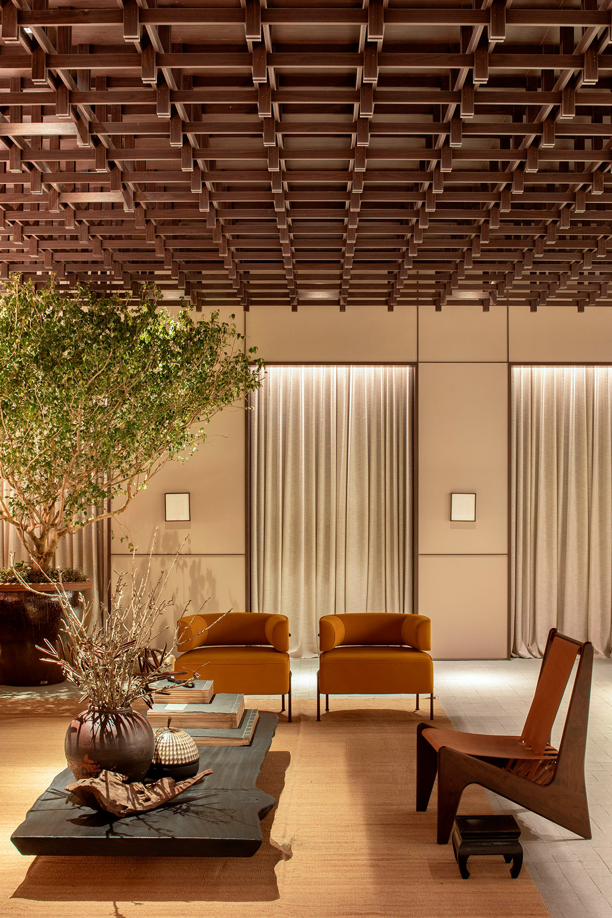 A presença de uma estética com influência oriental também chama atenção. Linhas puras, equilíbrio entre os elementos e uma certa espiritualidade pairam no ar. Essa leveza se conecta perfeitamente com o ambiente natural do parque.